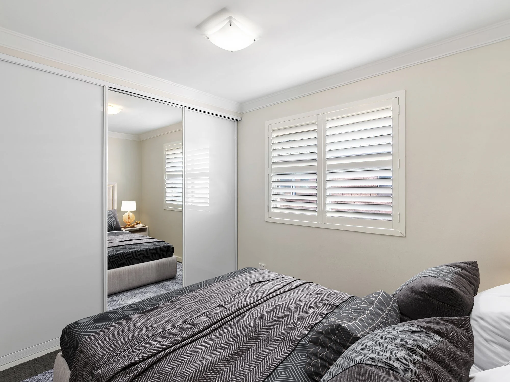 - 2 good-sized double bedrooms with built-in-robes, plantation shutters and plush carpeting